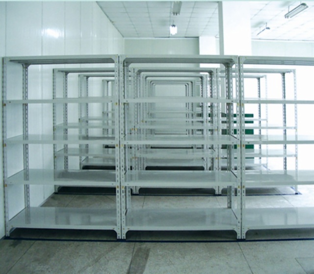 Angle steel shelves with universal angle steel column of lightweight steel shelves, installed in the connecting and inserting way, convenient installation and disassembly, steel plate to 50mm for the section of the regulation freely from, meet a variety of requirements.