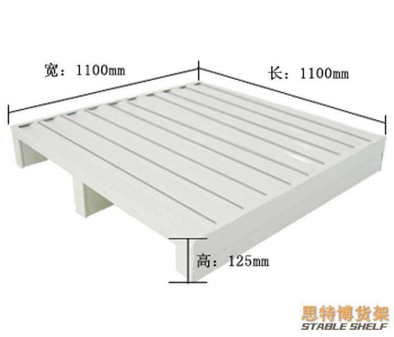 鋼制托盤(pán)是一種用于機(jī)械化裝卸、搬運(yùn)和堆存貨物的集裝箱單元工具,基本結(jié)構(gòu)由單層鋪板下設(shè)縱梁或墊塊、支腿等所組成,托盤(pán)的高度以能方便使用叉車(chē)或托盤(pán)搬運(yùn)車(chē)為原則。