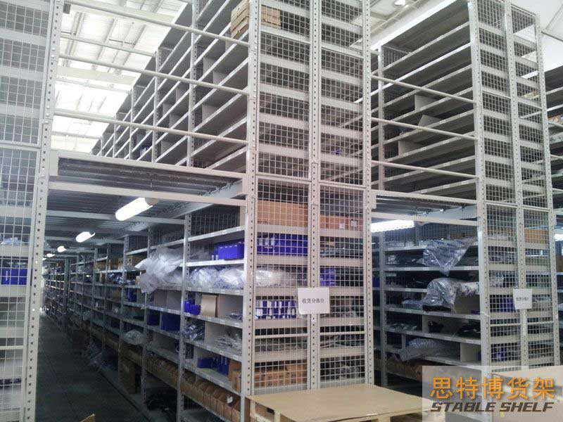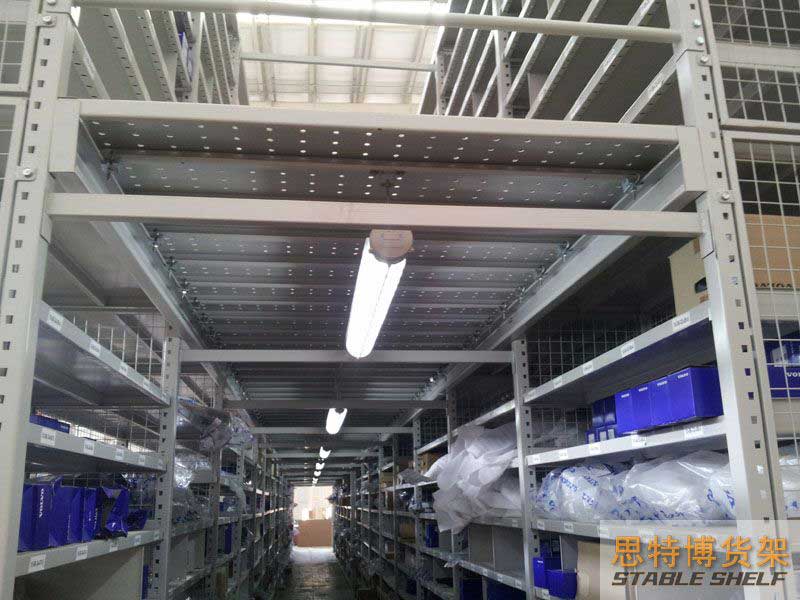 閣樓貨架系統(tǒng),通常利用中型擱板式貨架或重型擱板式貨架作為主體支撐加上樓面板(根據(jù)貨架單元的總負載重量來決定使用何種貨架),樓面板通常使用冷軋型鋼樓板、花紋鋼樓板或鋼格柵樓板。