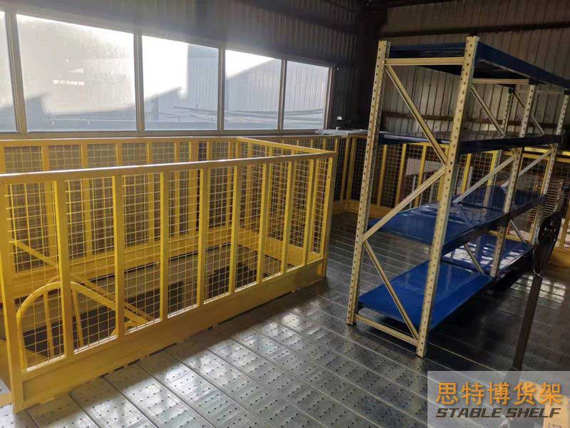 閣樓貨架樓面鋪設(shè)貨架專用樓板,與花紋鋼板或剛格柵相比層載能力強(qiáng)、整體性好、層載均勻、表面平整、易鎖定等特點(diǎn)