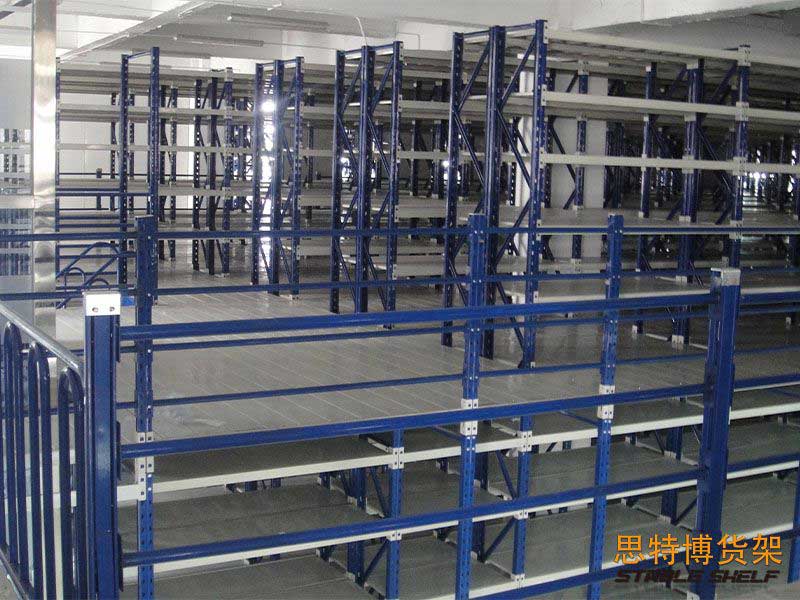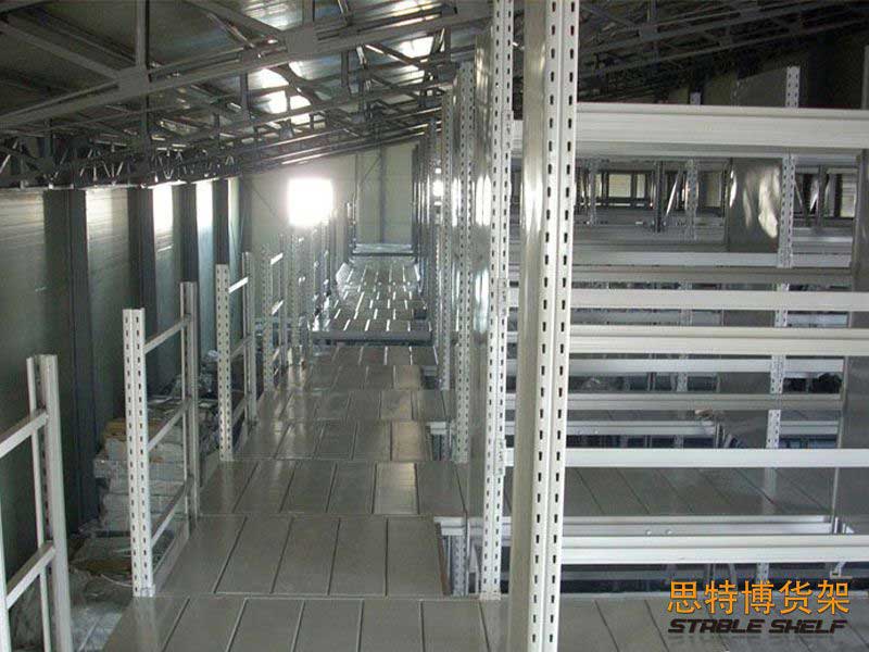 閣樓貨架系統(tǒng),通常利用中型擱板式貨架或重型擱板式貨架作為主體支撐加上樓面板(根據(jù)貨架單元的總負載重量來決定使用何種貨架),樓面板通常使用冷軋型鋼樓板、花紋鋼樓板或鋼格柵樓板。