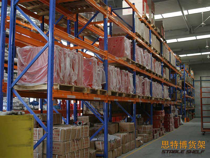 The heavy-duty shelf type uses the most common kind of shelf, which has good practice efficiency.The storage density of fixed racks is low, and the stored items are heavier and must be used with pallets and forklifts, so they are also called pallet racks.When using heavy-duty racks, the size, weight, and number of stacked layers of pallets and goods must be considered to determine the appropriate size of pillars and beams.In addition, in order to improve space utilization, the width of the aisle can be reduced, and the special forklift track form can be used to verticalize the storage space, which becomes a narrow lane type material rack.
