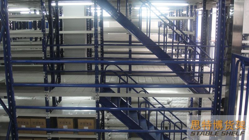 The floor of the mezzanine shelf is laid with special floor slabs for shelves. Compared with patterned steel plates or rigid gratings, it has the characteristics of stronger layer load capacity, good integrity, uniform layer load, smooth surface, and easy locking.