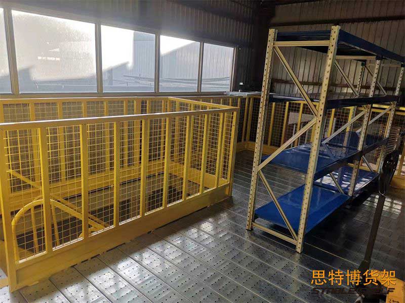 The floor of the mezzanine shelf is laid with special floor slabs for shelves. Compared with patterned steel plates or rigid gratings, it has the characteristics of stronger layer load capacity, good integrity, uniform layer load, smooth surface, and easy locking.