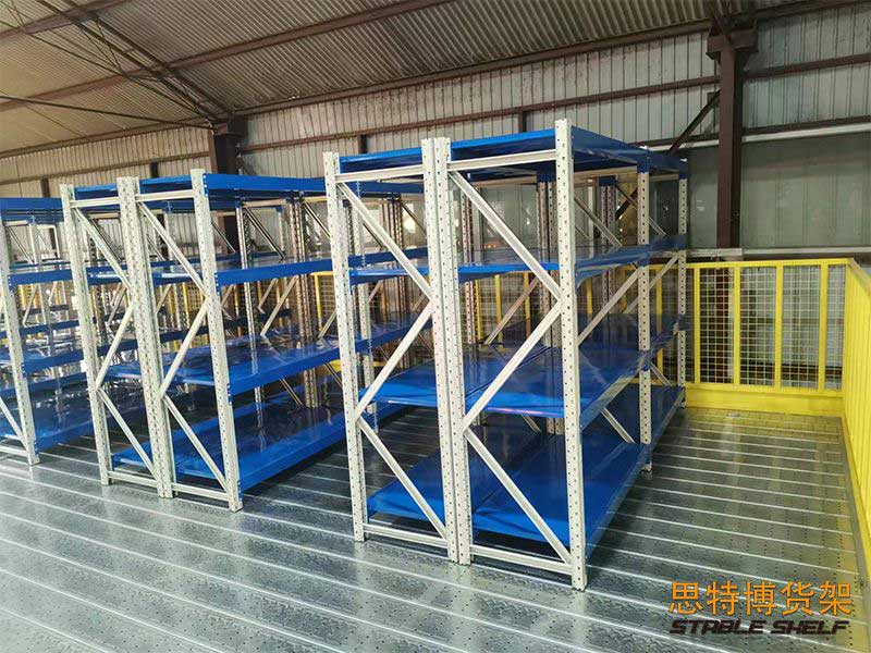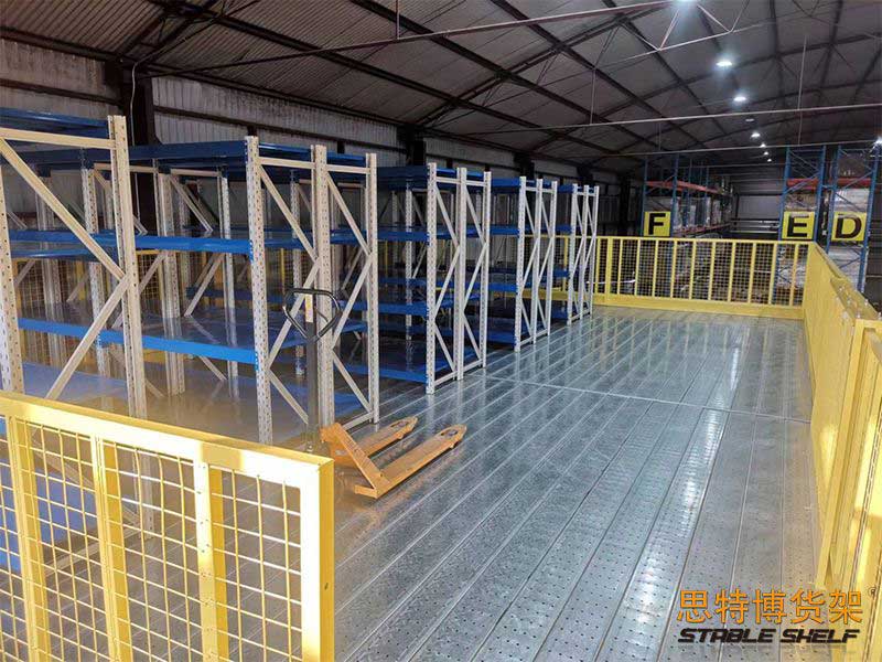 Mezzanine racking systems usually use medium-sized shelves or heavy-duty shelves as the main support plus floor panels (the type of shelf used is determined based on the total load weight of the shelf unit). The floor panels usually use cold-rolled steel floor slabs and patterned steel floor slabs. or steel grating floor slabs.