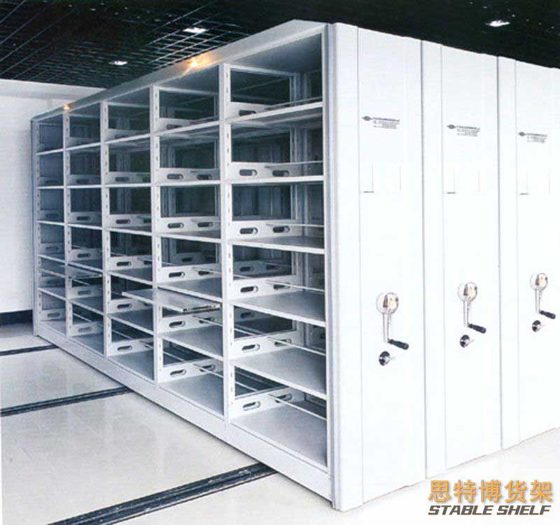 Mobile shelves only need to set up a channel, high space utilization, safe and reliable, easy to move, according to the load can be divided into heavy, medium and light three, the general heavy shelf using electric control easy to move, light, medium generally use hand movement. Product features: Suitable for warehouses with many inventory varieties, but low frequency of warehousing, or warehouses with high inventory frequency, but which can be stored in and out of the warehouse according to the order of the roadway. Usually only one operation channel is needed, which can greatly improve the utilization rate of the warehouse area, so it is widely used in media, library, finance, food and other industry warehouses.