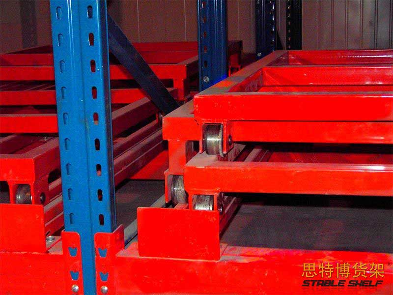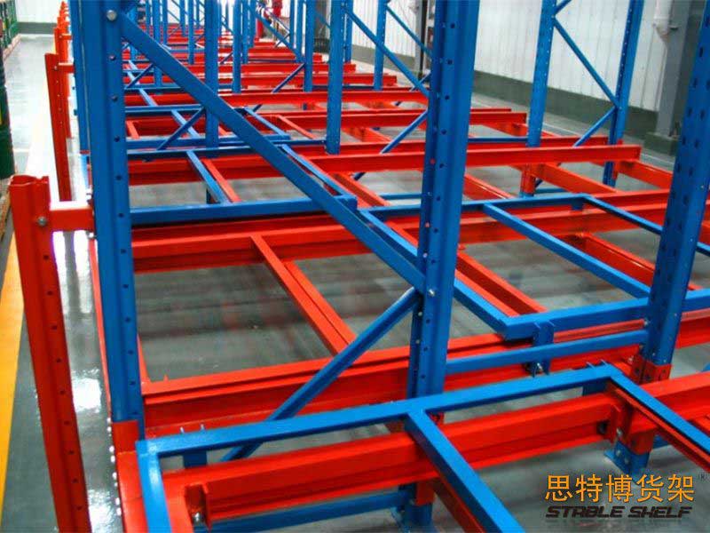Push-in shelves, also known as push-back shelves, are overlapped between the front and back beams with multi-layer carts, and the stacked goods are placed in the carts from the outside, and the stored goods will push the original goods inside. The push-in shelf is composed of typical structural parts such as a pallet car. The pallet car has flowable characteristics, and the goods are specified to enter and exit at one end of the shelf, and follow the first-in-last-out order. When storing and transporting goods, the forklift only works at the lower end of the shelf aisle and does not need to enter the shelf goods storage aisle. Such shelves have the typical characteristics of high storage density and fast storage and transportation speed. It is usually used in situations where the storage space is extremely limited, but the storage capacity needs to be increased or the goods have time requirements, and the requirements for cargo selection are not high. The advantage of the pressed type is to save the number of operation channels, the forklift is not high, can effectively improve the utilization rate, mainly used in the warehouse space is insufficient, and the area of the warehouse is not large; And the goods must fit the position that can be first in, last out.