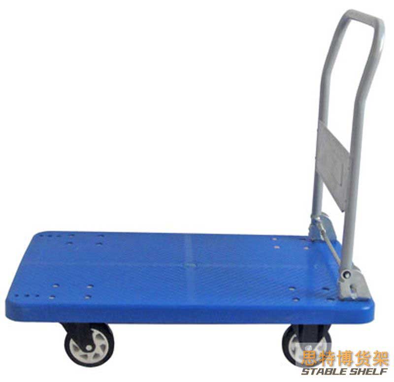 適于搬運(yùn)重量輕而便于裝卸的物品;有的車體伸出托架,便于安放桿、軸和管子等零