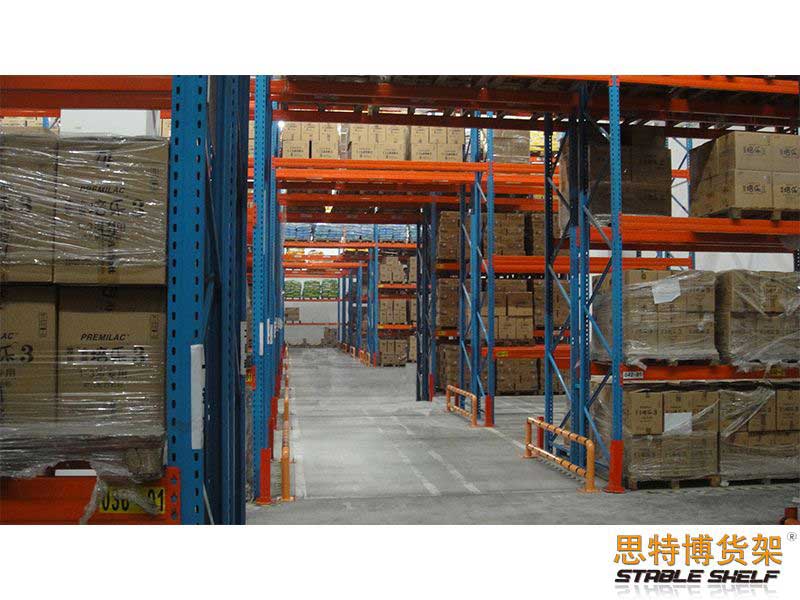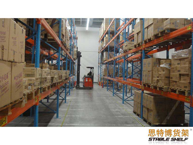 重型貨架是最常用的一種貨架,它具有良好的提取效率。固定架的儲(chǔ)存密度低,儲(chǔ)存的物品較重,必須配合托盤和叉車使用,所以又稱托盤貨架。在使用重型貨架時(shí),必須考慮托盤和貨物的尺寸、重量和堆疊層數(shù),以確定合適的支柱和橫梁尺寸。此外,為提高空間利用率,可減小通道寬度,采用專用堆垛機(jī)的軌道形式,即窄車道式貨架,將存儲(chǔ)空間垂直放置。