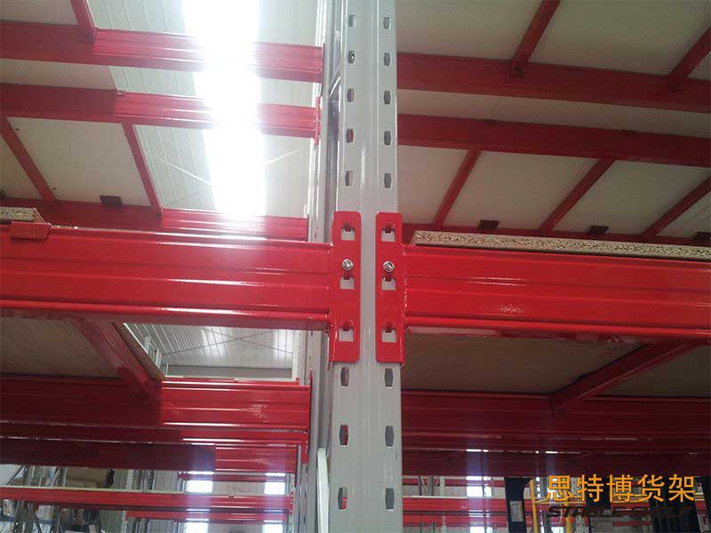 重梁式貨架由柱、梁、橫撐、斜撐和自鎖螺栓組合而成,可有效防止螺栓松動后貨架失穩(wěn);梁采用特殊冷軋p形封閉梁;該結(jié)構(gòu)具有簡單可靠、自重輕、承載能力強、成本低等特點。柱卡與柱連接時,裝有特殊設(shè)計的安全銷,可保證梁在外力沖擊下不會脫落;層壓板采用國際條形層壓板,具有承載能力強、耐磨、更換簡單、維護(hù)成本低的特點。