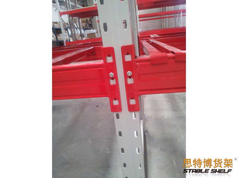 重型貨架是最常用的一種貨架,它具有良好的提取效率。固定架的儲存密度低,儲存的物品較重,必須配合托盤和叉車使用,所以又稱托盤貨架。在使用重型貨架時,必須考慮托盤和貨物的尺寸、重量和堆疊層數(shù),以確定合適的支柱和橫梁尺寸。此外,為提高空間利用率,可減小通道寬度,采用專用堆垛機的軌道形式,即窄車道式貨架,將存儲空間垂直放置。