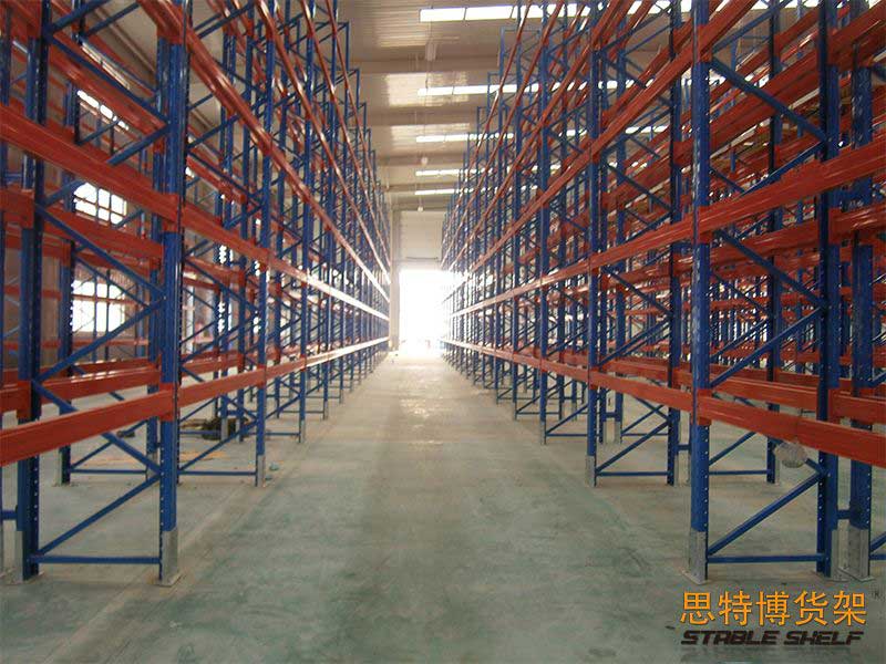 重型貨架是最常用的一種貨架,它具有良好的提取效率。固定架的儲存密度低,儲存的物品較重,必須配合托盤和叉車使用,所以又稱托盤貨架。在使用重型貨架時,必須考慮托盤和貨物的尺寸、重量和堆疊層數(shù),以確定合適的支柱和橫梁尺寸。此外,為提高空間利用率,可減小通道寬度,采用專用堆垛機(jī)的軌道形式,即窄車道式貨架,將存儲空間垂直放置。