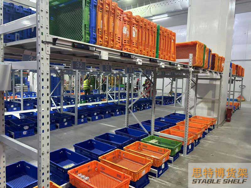 重型貨架是最常用的一種貨架,它具有良好的提取效率。固定架的儲存密度低,儲存的物品較重,必須配合托盤和叉車使用,所以又稱托盤貨架。在使用重型貨架時,必須考慮托盤和貨物的尺寸、重量和堆疊層數(shù),以確定合適的支柱和橫梁尺寸。此外,為提高空間利用率,可減小通道寬度,采用專用堆垛機(jī)的軌道形式,即窄車道式貨架,將存儲空間垂直放置。