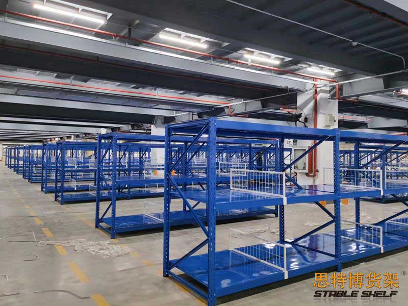 屬于倉(cāng)儲(chǔ)貨架的一種,擱板貨架類型。是按貨架的承載量來區(qū)分與命名的。按照這一劃分原則中型貨架介于輕型貨架和重型貨架之間,故名中型貨架。通常貨架承載150kg-800kg/層(貨架載荷絕大多數(shù)是以層為單位的承載量計(jì)算)。